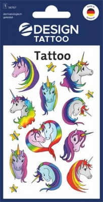 Matrica, tetoválás, 1 ív, 76x120 mm, AVERY ZWECKFORM, "Z-Design No.56767",  unikornisok