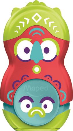 Hegyező és radír, egylyukú, tartályos, MAPED "Fancy", vegyes színek